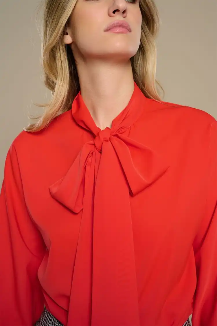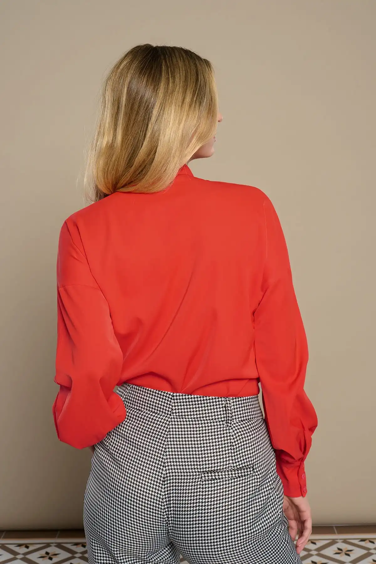 Μπλούζα με δαντέλα στο λαιμό και μακριά μανίκια, εφαρμοστά με κουμπιά στις μανσέτες.