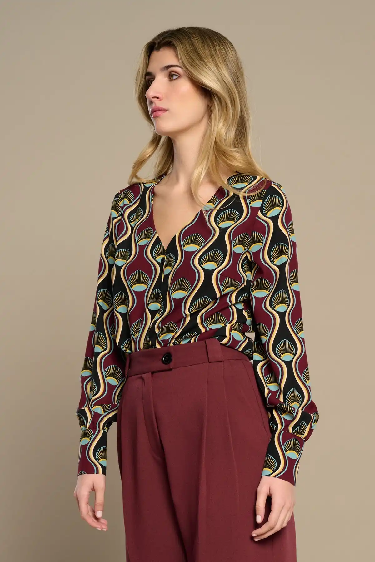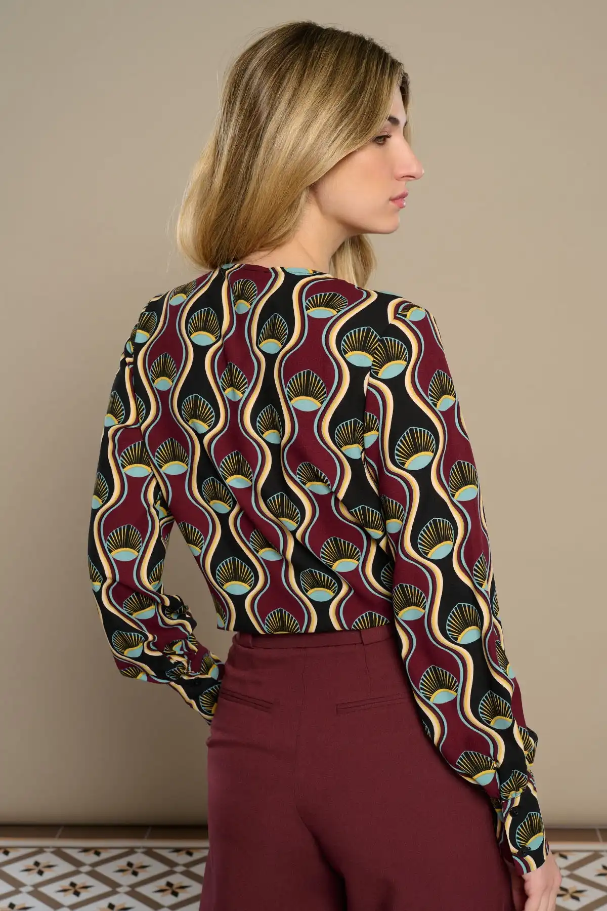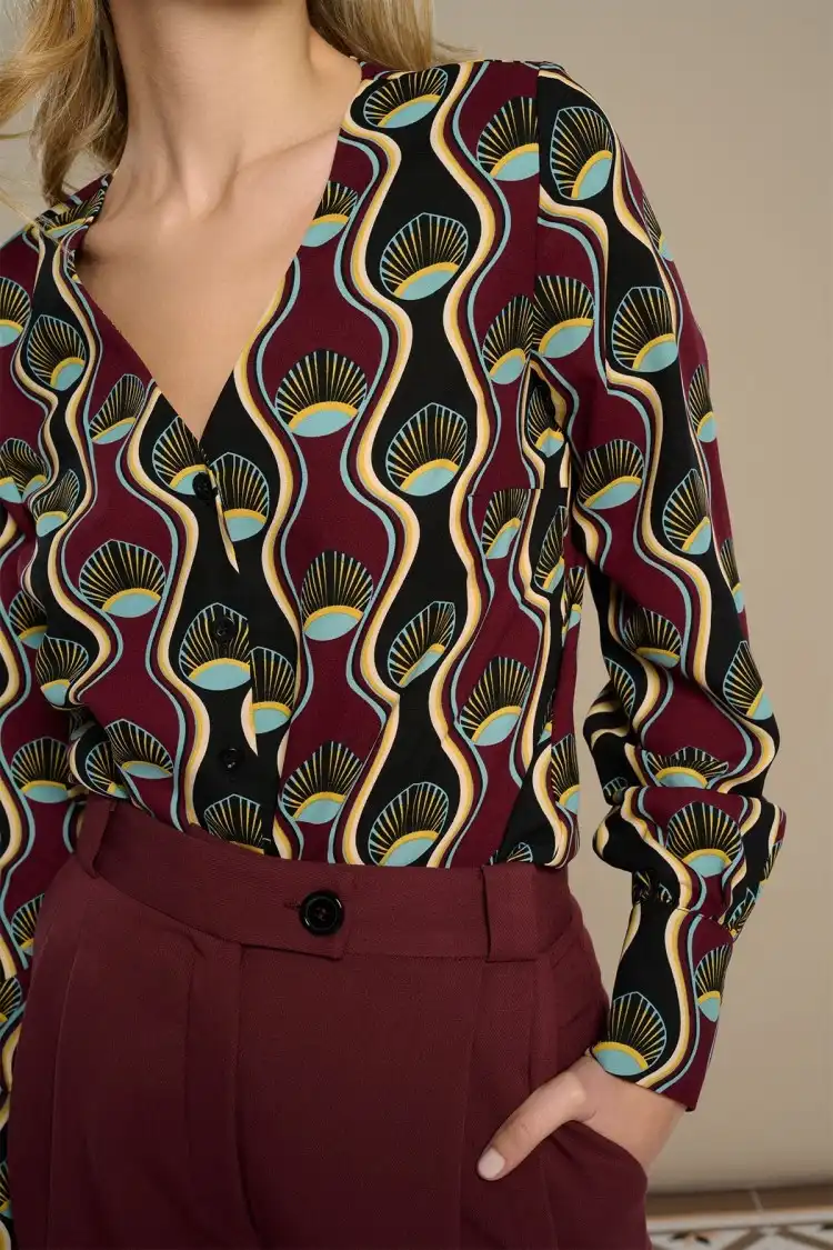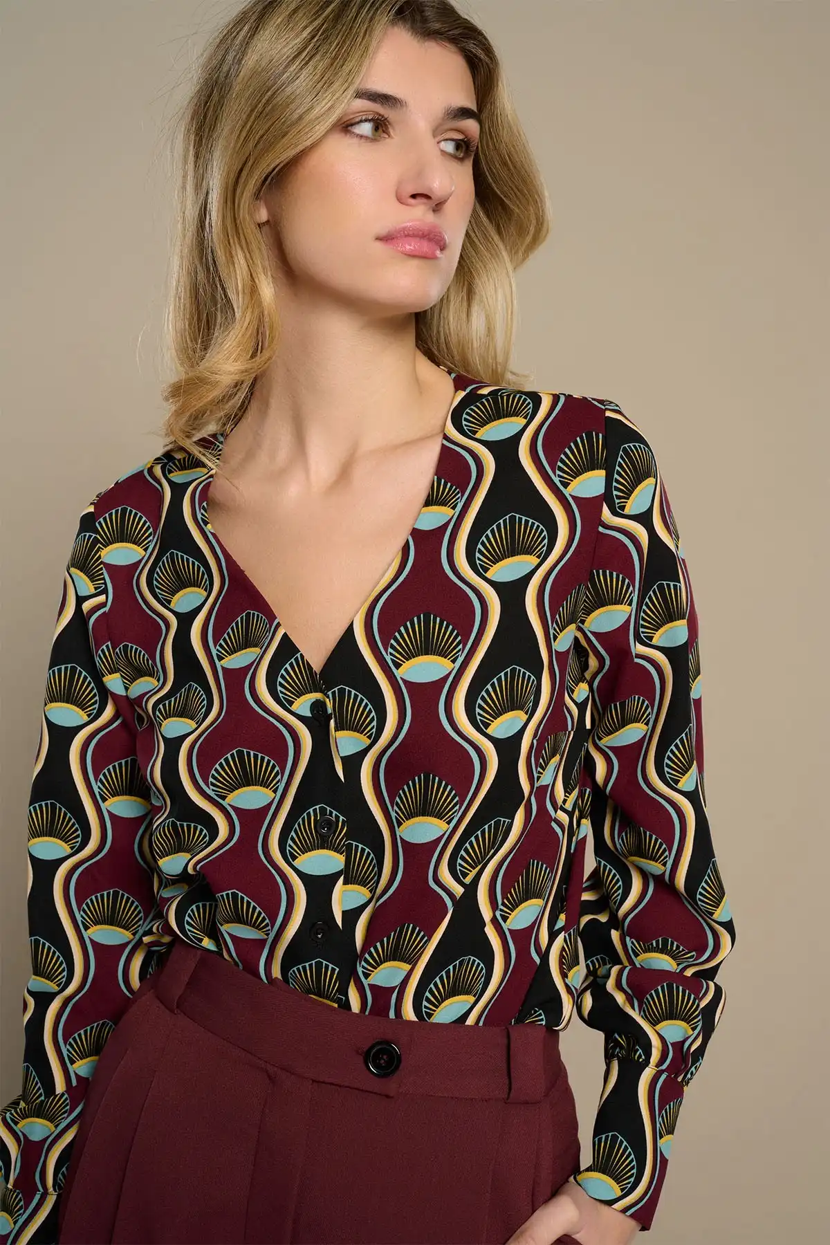 Μπλούζα με λαιμόκοψη V και κουμπιά στο μπροστινό μέρος.