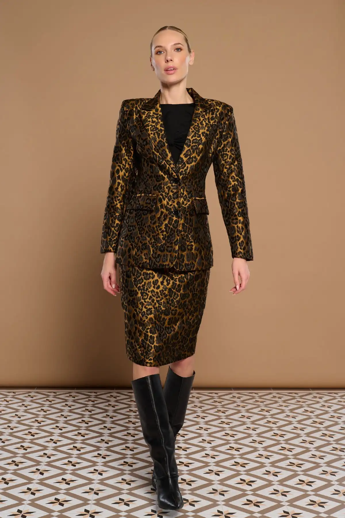 Σακάκι με γιακά τύπου πέτο και μακριά μανίκια με ιμάντες στους ώμους.