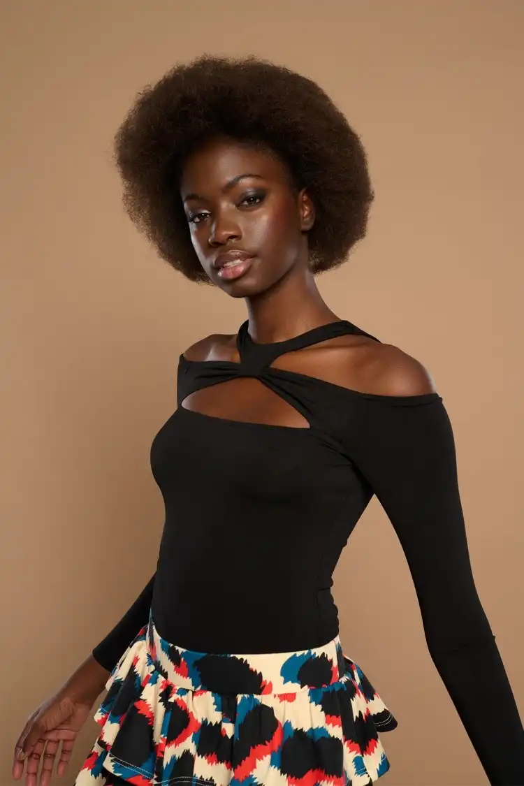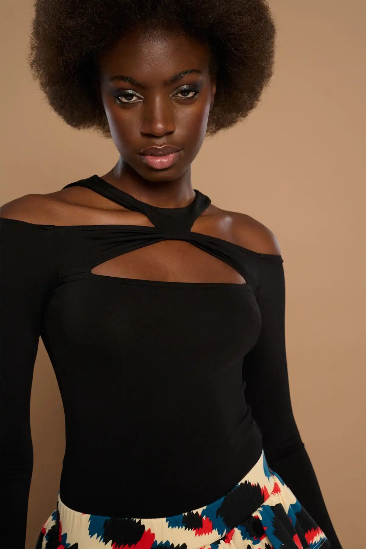 Μπλούζα τύπου Bardot με γιακά choker και άνοιγμα στη λαιμόκοψη.