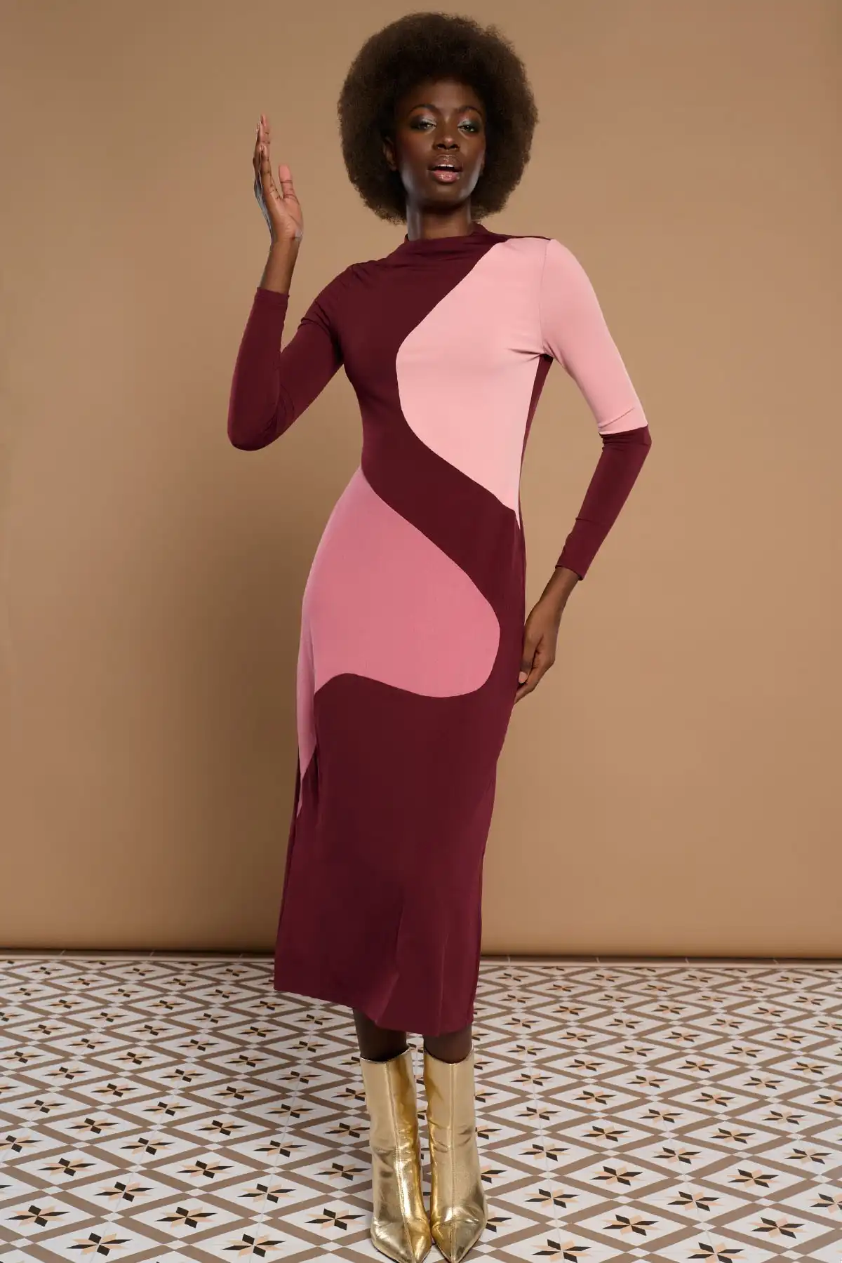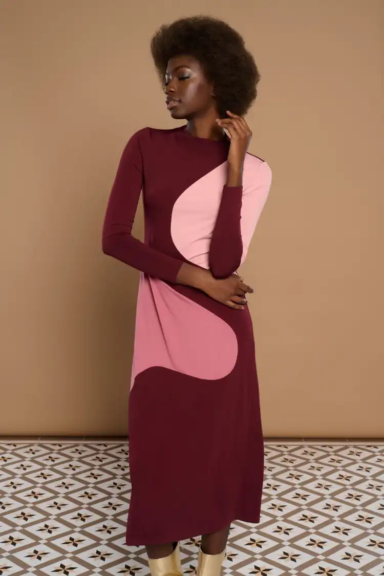Color block σχέδιο σε τόνους μπορντό και ροζ.