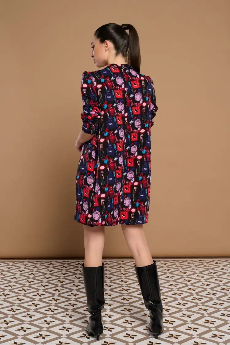 Κοντό φόρεμα με στρογγυλή λαιμόκοψη και μακριά μανίκια.