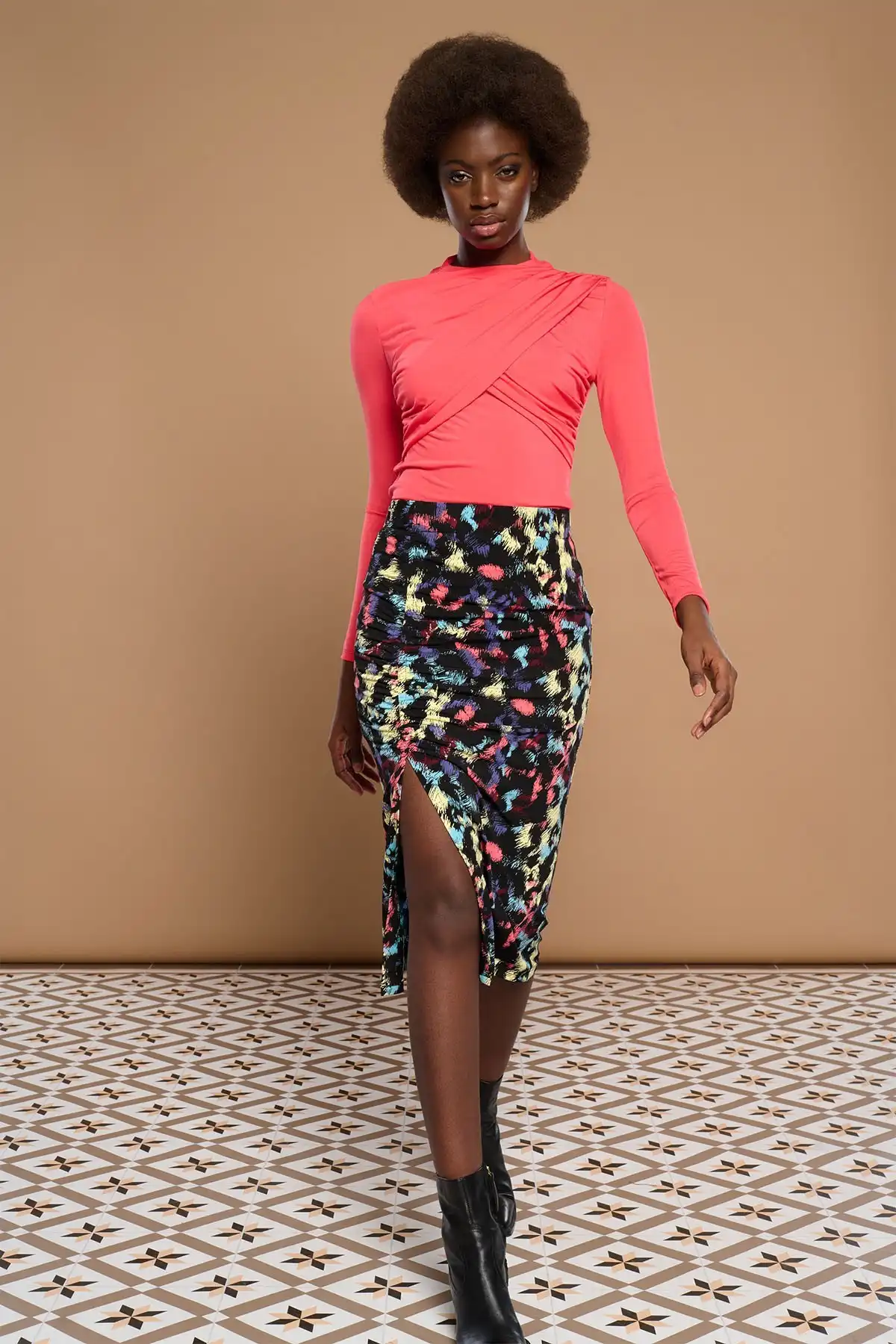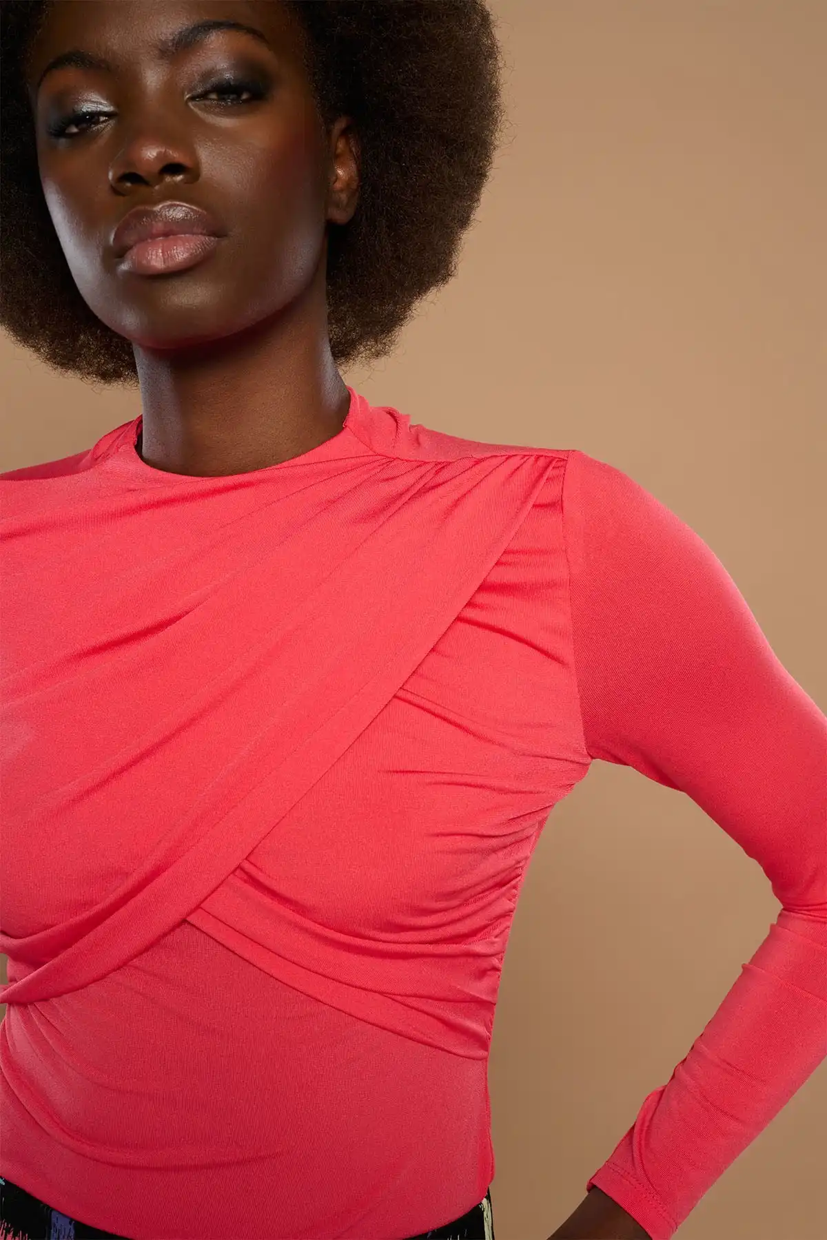 Σταυρωτή λαιμόκοψη και βολάν στο πλάι.