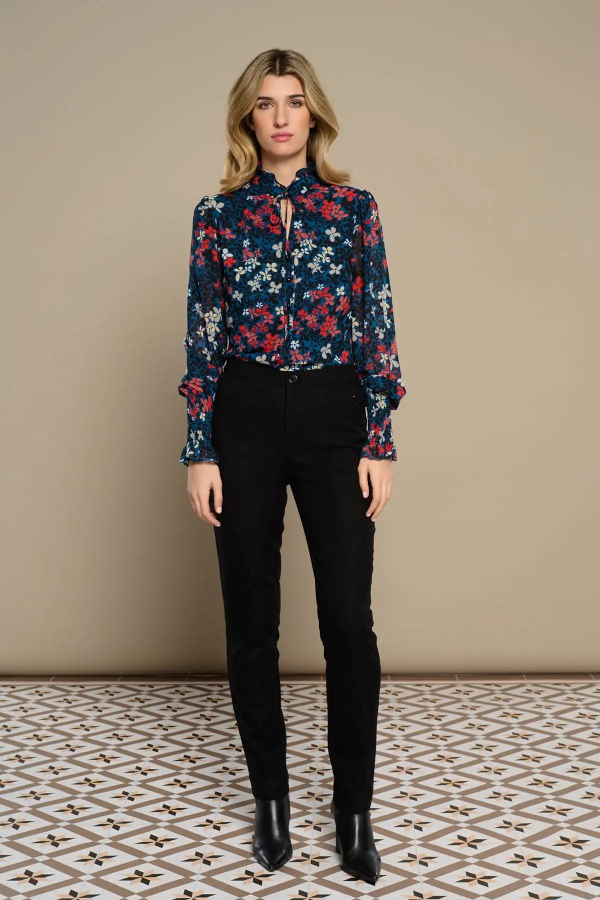 Μπλούζα με λαιμόκοψη V και φιόγκο στον γιακά.